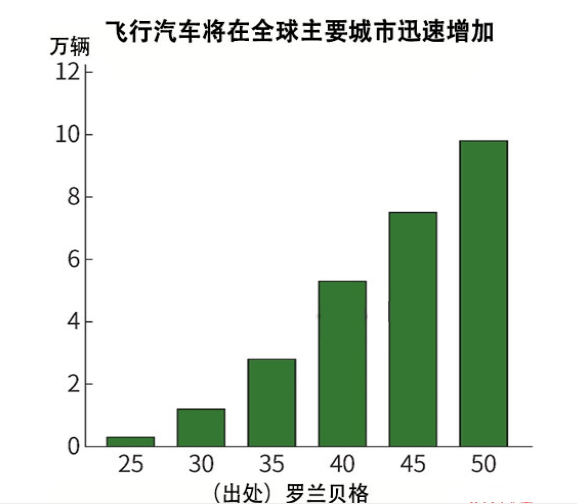 据德国咨询公司罗兰贝格预测,2050年全球95个主要城市将有9万8000辆飞行汽车投入使用。